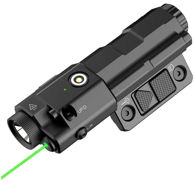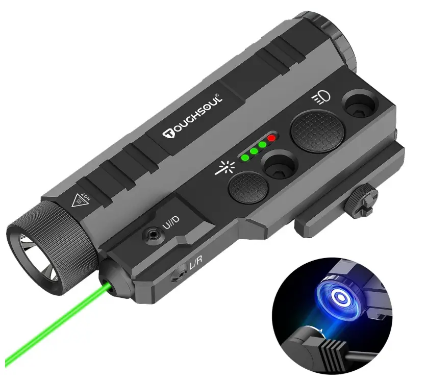 The TOUGHSOUL Flashlight Laser Sight Combo delivers an impressive 1600 lumens of brightness paired with a powerful green laser for fast, precise target acquisition in any lighting condition. Its rechargeable design ensures long-lasting performance, while the durable housing and secure mounting system keep it steady even under heavy recoil. This combo is ideal for buyers looking for a reliable, high-visibility illumination and aiming solution that enhances both accuracy and overall tactical readiness