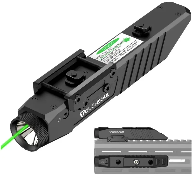 TOUGHSOUL Rifle Green/Blue/Red Laser Sight Compatible with M-Lok/Picatinny Rail, Rechargeable Low-Profile Tactical Rifle Laser Sight with Strobe Function