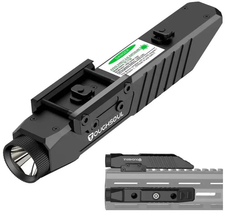 TOUGHSOUL Tactical Flashlight Green Laser Sight Combo, 1450 Lumen Picatinny Rail MLOK Mounted Rechargeable Rifle Flashlight