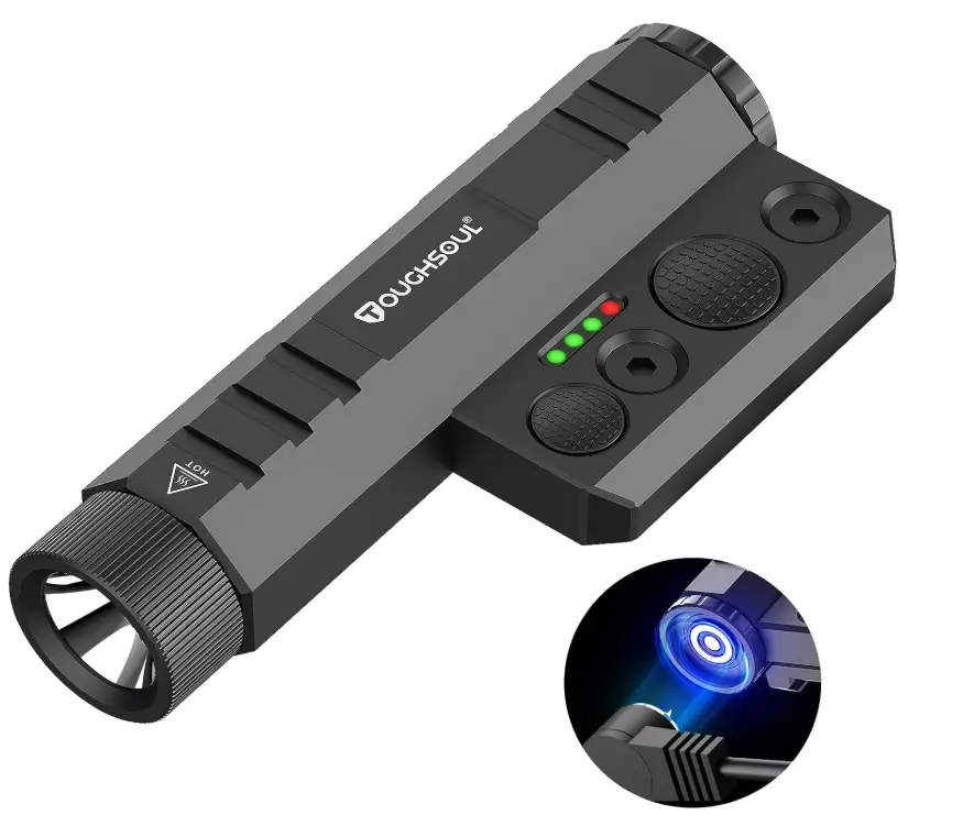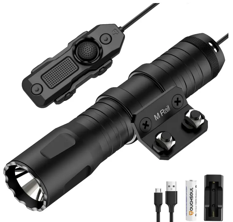 The TOUGHSOUL Tactical Flashlight delivers 1450 lumens of intense brightness with a momentary strobe function, giving buyers powerful illumination for rapid threat identification. Its dual Picatinny and M-LOK compatibility allows for easy, secure mounting on a wide range of rifles. Built with a rechargeable design and durable construction, this flashlight offers dependable performance for users who need a reliable lighting solution in tactical or low-light situations