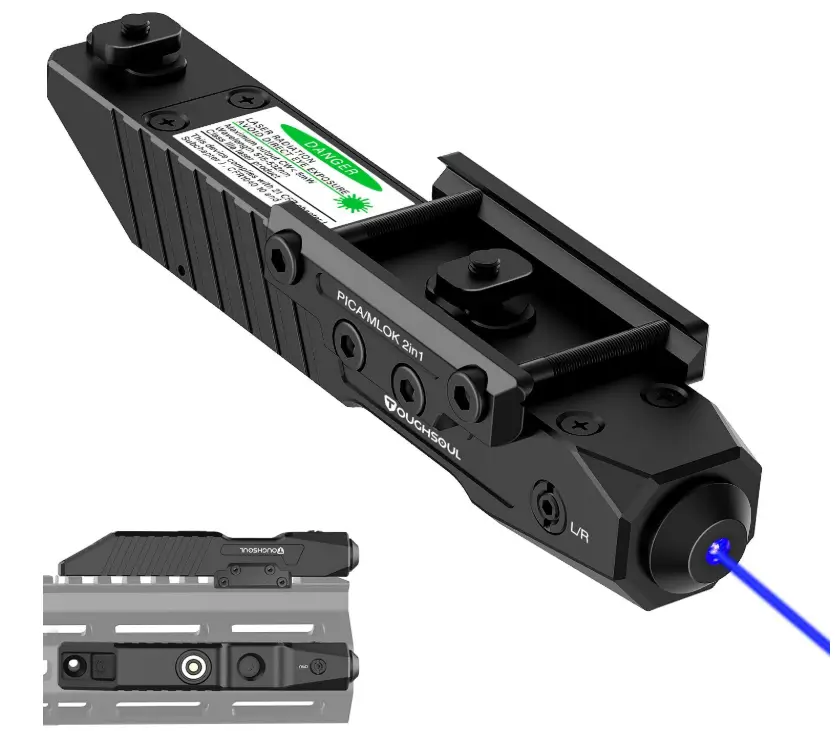 The TOUGHSOUL Rifle Laser Sight offers green, blue, and red laser options in a low-profile design, giving buyers flexible and highly visible aiming solutions for different environments. Its compatibility with both M-Lok and Picatinny rails ensures easy mounting on most modern rifles. With a rechargeable power system and strobe function, this laser provides reliable performance and enhanced tactical capability for users who need fast, precise target acquisition
