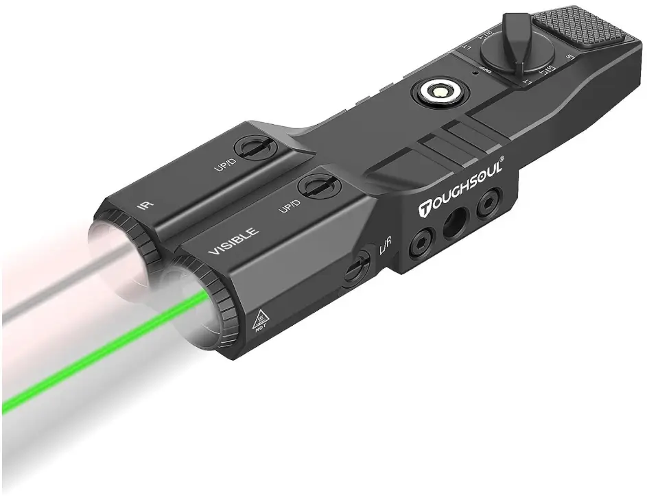 The TOUGHSOUL 4-in-1 Combo provides a tactical flashlight, green laser, 940nm IR illuminator, and IR laser in one compact, low-profile unit — giving buyers a versatile solution for both daytime and nighttime shooting. It mounts securely to M-LOK or Picatinny rails, making it highly adaptable to different rifle setups. With its rechargeable design and multi-mode capability, this combo is ideal for users who need reliable illumination, precise aiming, and effective IR functionality in a single streamlined device